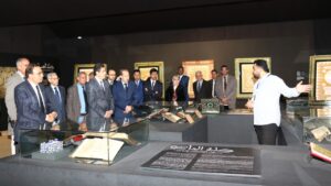 وقد استمع الوفدان إلى شروحات مفصلة حول ما تتضمنه أجنحة وأقسام المعرض المختلفة، وتقنيات العرض الحديثة، التي تروي وتوثق بالتفصيل سيرة رسولنا عليه الصلاة والسلام، وتنقل الزائر افتراضيا إلى زمن النبي عليه أفضل الصلاة والسلام.