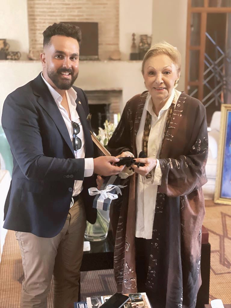 استقبلت إمبراطورة إيران السابقة، فرح بهلوي، في إقامتها بالمغرب، الرسام التشكيلي المغربي المقيم بإسبانيا، سفيان بوكرين، حيث تبادل الطرفان الهدايا في لقاء رسمي دار النقاش فيه على الفن والعلاقات المتميزة االتي تربط فرح بهلوي بالمغرب.