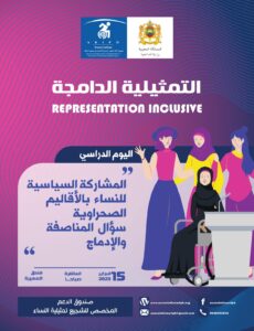 ويأتي هذا النشاط في إطار مشروع “التمثيلية الدامجة” موضوع اتفاقية شراكة بين الجمعية ووزارة الداخلية وصندوق الدعم المخصص لتشجيع تمثيلية النساء، ويهدف إلى للتحسيس بالمشاركة السياسية للنساء بالأقاليم الصحراوية و تجارب إدماج النساء ذوات الاعاقة في الحقل السياسي ، وتقوية القدرات القيادية للمنتخبات والمرشحات المحتملات وعضوات الأحزاب السياسية، وتعزيز انخراط النساء والفتيات بعقلية تطمح للمناصفة الدامجة