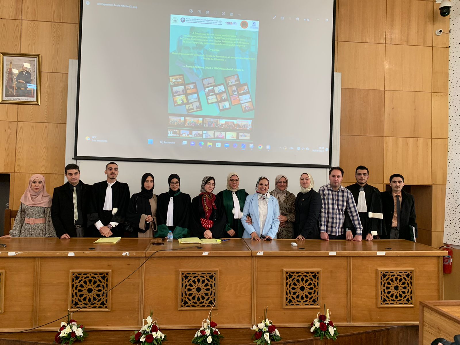 ومن زاوية أخرى فالحفل العلمي الختامي جسد أهمية الجانب المؤسساتي وانفتاح الجامعة المغربية على المراكز البحثية في تنظيم هذه الانشطة ، ودور العيادات القانونية ومختلف المؤسسات العمومية في تعزيز نشر الوعي بحقوق الانسان وثقافة حقوق الانسان انطلاقا من الترافع على مواضيع ذات الصلة بحقوق الانسان، واختتمت أشغال المحاكمة الافتراضية بتوزيع الشواهد التقديرية على الاساتذة المؤطرون وعلى الطلبة المستفيدون من الدورات التكوينية والمشاركون في المحاكمات الافتراضية.