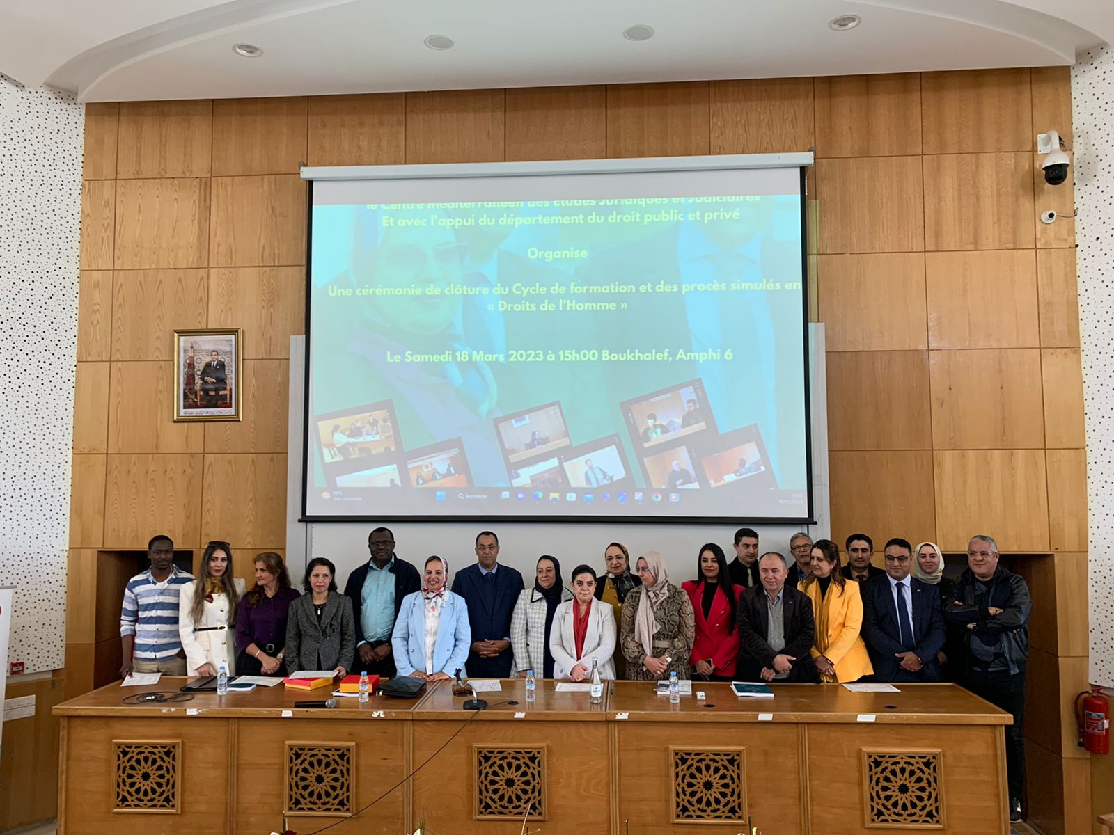 شهدت كلية الحقوق بطنجة يوم السبت 18 مارس 2023 الحفل العلمي الختامي، للمحاكمات الصورية والدورات التكوينية بحيث انطلقت أشغال اللقاء العلمي بكلمة السيد عميد كلية العلوم القانونية والإقتصادية والإجتماعية بطنجة الذي تطرق لأهمية المحاكمات الافتراضية وتقنيات الترافع في التكوين الجامعي للطلبة، وبعدها كلمة السيد رئيس شعبة القانون الخاص بكلية الحقوق بطنجة وكلمة السيدة مديرة العيادة القانونية بكلية الحقوق بطنجة، وكلمة السيد رئيس المركز المتوسطي للدراسات القانونية والقضائية الذي أبرز أهمية وراهنية مشروع تعزيز حقوق الانسان وسيادة القانون ،وذلك في إطار تنفيذ هذا المشروع بشراكة مع الصندوق الوطني للديمقراطية NED، بحضور طلبة سلك الإجازة وطلبة سلك الماستر وطلبة سلك الدكتوراه والمهتمون بالشأن القانوني والحقوقي.