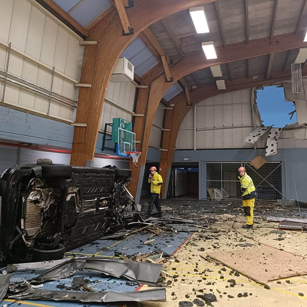 ولحسن الحظ أن الصالة الرياضية كانت فارغة أثناء وقوع الحادث، حيث غادرت لاعبات شابات الملعب قبل لحظات قليلة فقط من حصولالواقعة.