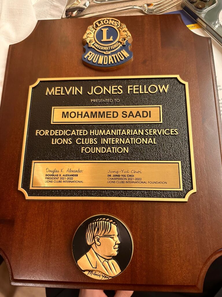 وتلقى محمد السعدي درعا فخريا من مؤسسة “ليونز” الدولية، بحضور عدد من المسؤولين الممثلين لهذه المؤسسة، من بينهم طارق المودي محافظ نادي “ليونز” الدولي في المغرب، إضافة إلى مسؤولين مغاربة آخرين مثل عبد الرحيم الهاني المندوب الإقليمي لمؤسسة وسيط المملكة.