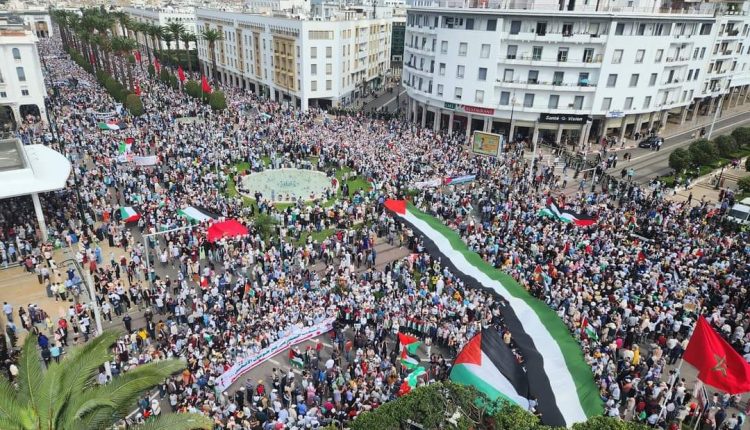 انطلقت اليوم الأحد مسيرة شعبية كبيرة بالرباط, تتضامن مع الشعب الفلسطيني ورافضة للعدوان الإسرائيلي على قطاع غزة.