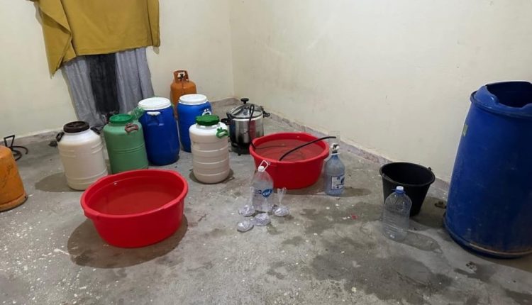 وقد أمكن إيقاف المشتبه فيه بتجزئة الوكالة “84” في حالة تلبس بحيازة كمية من مسكر ماء الحياة موجهة للترويج، قبل أن تسفر عملية التفتيش التي بوشرت بمسكنه عن حجز 350 لترا من المواد المخمرة معبأة ببراميل، و20 لترا من صافي المسكر، علاوة على معدات مصنع تقليدي خاص بعملية التقطير.