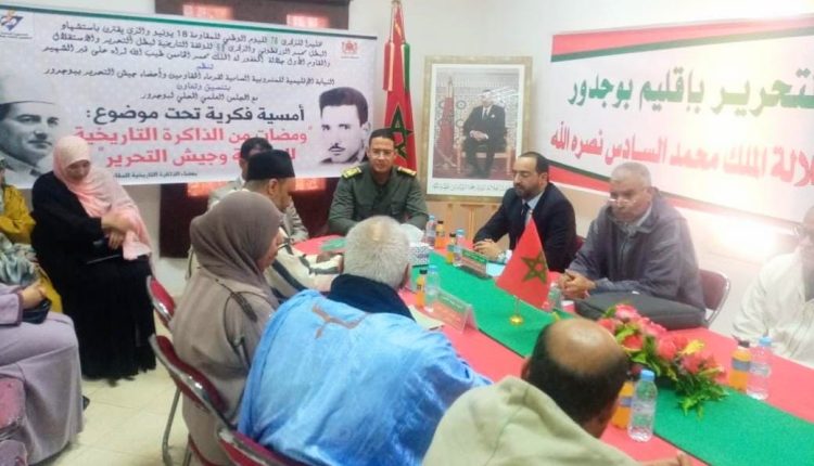 في إطار الأنشطة الفكرية المسطرة احتفالا بالذكرى السبعين لليوم الوطني للمقاومة 18 يونيو، والذي يقترن باستشهاد البطل محمد الزرقطوني، والذكرى الثامنة والستين للوقفة التاريخية لبطل التحرير والاستقلال والمقاوم الأول جلالة المغفور له الملك محمد الخامس طيب الله ثراه أمام قبر الشهيد، نظمت النيابة الإقليمية للمندوبية السامية لقدماء المقاومين وأعضاء جيش التحرير ببوجدور، بتنسيق وتعاون مع عمالة إقليم بوجدور، وبشراكة ودعم من المجلس الإقليمي لبوجدور، وبتنسيق مع المجلس العلمي المحلي لبوجدور، أمسية فكرية موسومة ب: “ومضات من الذاكرة التاريخية للمقاومة وجيش التحرير”، وذلك مساء يومه السبت 22 يونيو 2024 ابتداء من الساعة السادسة مساء بفضاء الذاكرة التاريخية للمقاومة والتحرير ببوجدور.