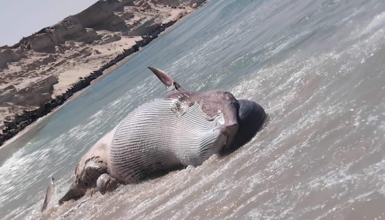 الداخلة.. أمواج البحر تلفظ حوتا نافقا