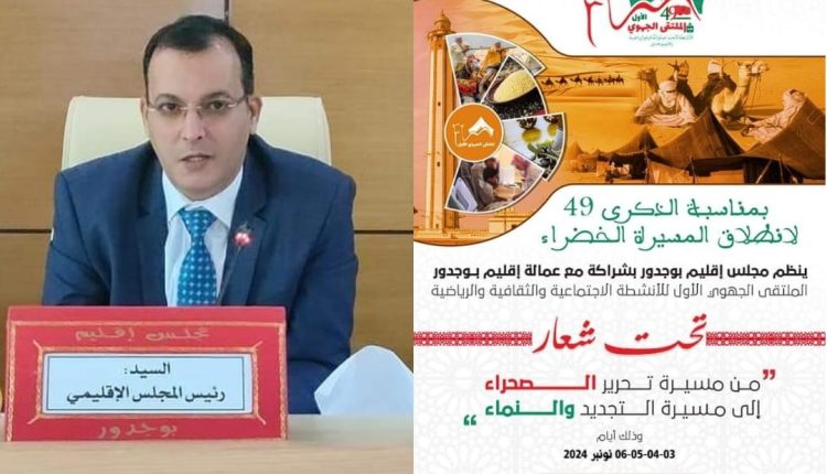 وفي ختام حديثه أكد “أحمد خيار” أن المجلس الإقليمي بكل مكوناته حريص على كسب رهان نجاح الملتقى الجهوي الأول باعتباره عرس وطني يخلد ذكرى المسيرة الخضراء المظفرة وأن الساكنة البوجدورية وكعادتها حاضرة بقوة للاحتفال بهذه المناسبة الوطنية وغيرها من المناسبات الوطنية.