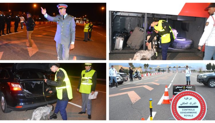 وقد أحكمت مصالح الدرك الملكي أيضا قبضتها على مداخل ومخارج النفوذ الترابي للأقاليم الثلاث، حيث وضعت سدودا ونقاطا للتفتيش والمراقبة، كما تمت الاستعانة بالكلاب المدربة بعدد من المراكز حرصا منها على مرور رأس السنة الجديدة 2025 في أحسن الظروف.