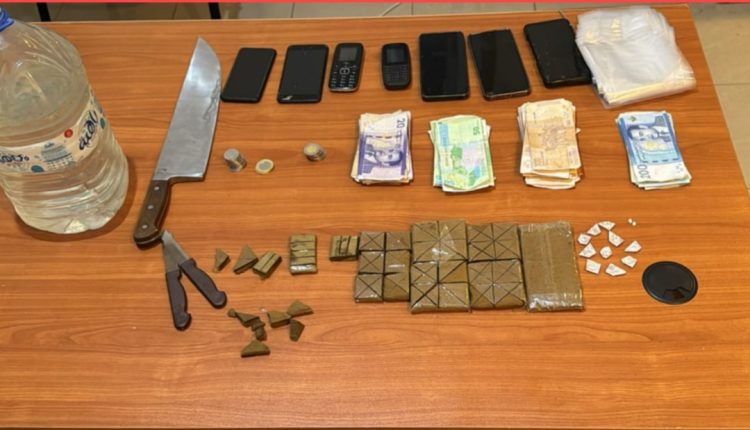 وقد جرى توقيف المشتبه فيه الأول بحي النهضة بمدينة المرسى متلبسا بحيازة كمية مجزأة من مخدر الشيرا موجهة للترويج، قبل أن تسفر عملية التفتيش التي أجريت بداخل مسكنه عن توقيف باقي المشاركين، وحجز كمية من مخدر الشيرا، ومجموعة من الأقراص الطبية المخدرة من نوع ريفوتريل، علاوة على كمية من مسكر “الماحيا”، وكذا ثلاثة أسلحة بيضاء، أحدها عبارة عن مدية كبيرة الحجم وسكينين خاصين بتقطيع المخدر، بالإضافة إلى مبلغ مالي يشتبه كونه من عائدات هذه الأنشطة الإجرامية، وهواتف نقالة.