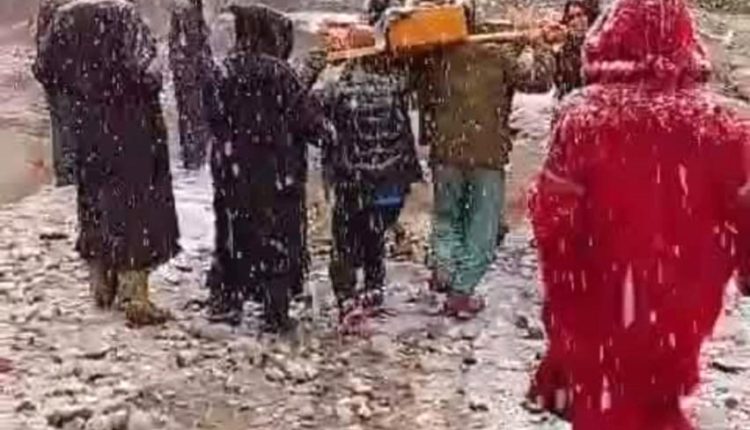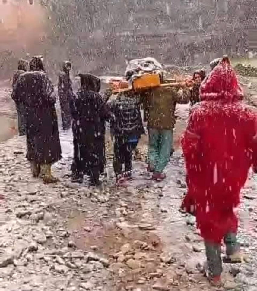 وسط الثلوج الكثيفة.. نقل شخص مصاب بكسور في نعش للأموات بآيت عباس بأزيلال