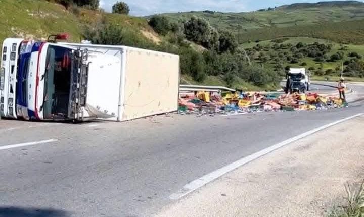 تطوان.. إنقلاب شاحنة محملة بالأسماك بمنطقة عين الحصن