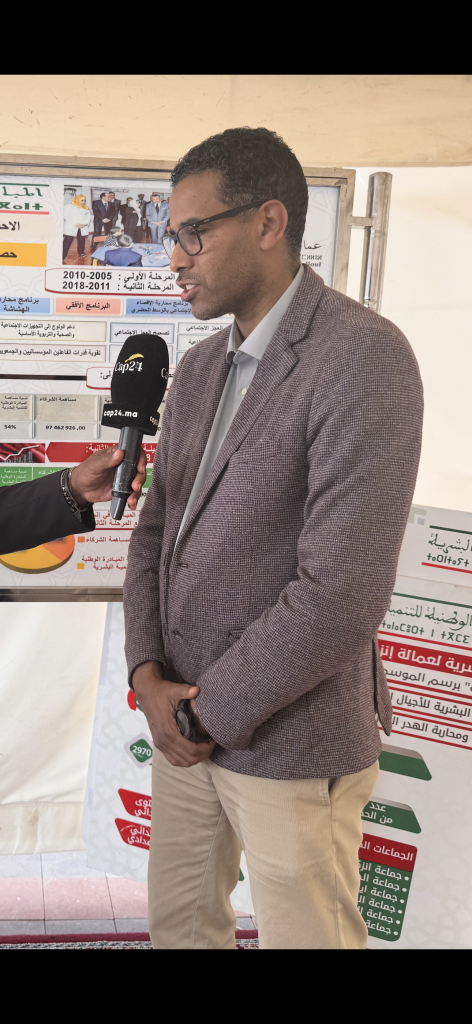 هدا وقد حل مبعوث كاب 24 بعمالة إنزكان ، من أجل تسليط الضوء على نتائج المراحل التلاث من جهة ، وتغطية فعاليات المعرض المقام بهذه المناسبة والذي تشارك فيه جمعيات وتعاونيات من بين المستفيدين من الدعم المقدم في اطار المبادرة الوطنية للتنمية البشرية ، وفي هذا السياق ، صرح السيد أحمد عديدي بصفته رئيسا لمصلحة الدفع بالتنمية البشرية للاجيال الصاعدة قسم العمل الاجتماعي عمالة انزكان، انه منذ انطلاق المبادرة إلى اليوم تشير إلى مرور عقدين من الزمن في خدمة التنمية ، تمخض عنها مجموعة من الإنجازات والمشاريع بقيادة ملك البلاد محمد السادس نصره الله ، كما ان عامل عمالة انزكان – يضيف المتحدث- لم يدخر جهدا لمواكبة المبادرة بشكل مباشر منذ تعيينه سنة 2018 تزامنا مع المرحلة التالثة بإحداثه مخططا وخارطة الطريق على مستوى العمالة بصفته رئيسا للجنة الإقليمية المبادرة الوطنية .
