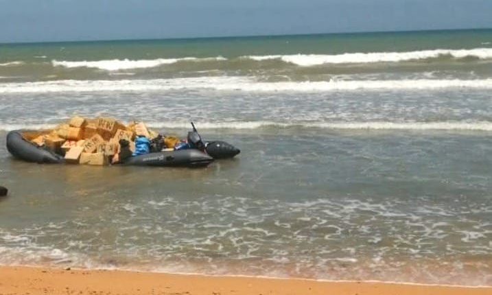وحسب المعطيات المتوفرة فإن عناصر الفرقة 34 المكلفة بحراسة الشريط الساحلي رصدت قارب مطاطي محمل برزم من مخدر الشيرا وهو جانح بشاطئ منطقة حيمر ماه بنفوذ جماعة لمسيد ببوجدور، لتقوم بالتدخل وتوقيف شخصين كانا بعين المكان.