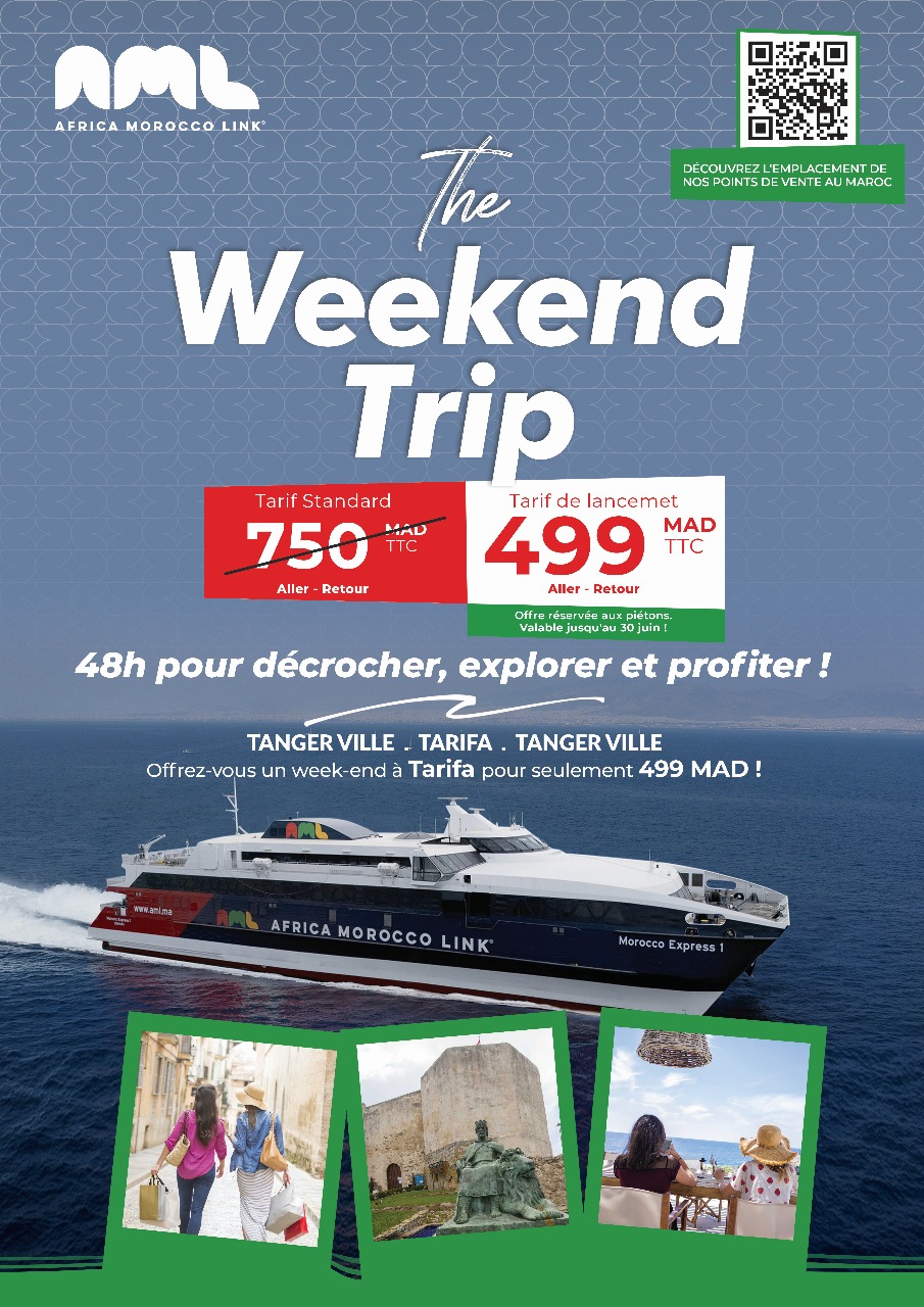 أطلقت شركة Africa Morocco Link (AML) عرضاً استثنائياً ومغرياً يخص الرحلات البحرية بين مدينة طنجة وطريفة الإسبانية، حيث تتيح للمسافرين فرصة القيام برحلة ذهاب وإياب خلال 48 ساعة فقط بثمن لا يتجاوز 499 درهماً، وذلك إلى غاية 30 يونيو 2025.