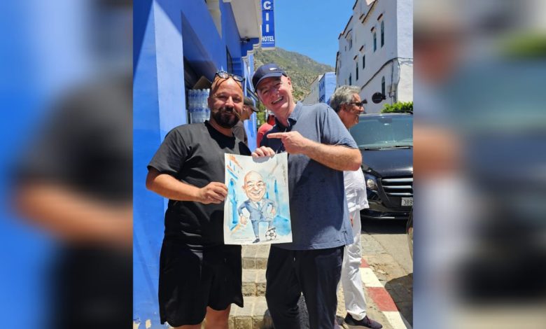 رسام مغربي يفاجئ رئيس الفيفا برسم كاريكاتيري وسط أزقة شفشاون