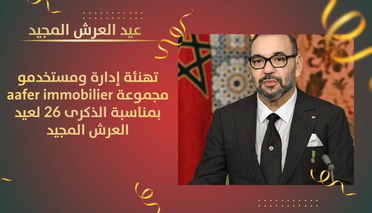 إدارة ومستخدمو مجموعة aafer immobilier يهنئون جلالة الملك بعيد العرش المجيد في الذكرى الـ 26