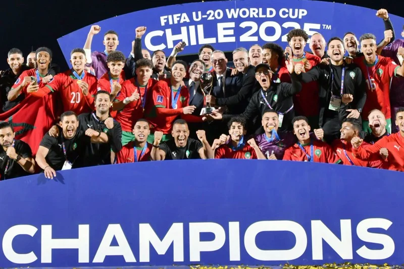 قال الاتحاد الإفريقي لكرة القدم (كاف), إن منتخب المغرب تمكن، بعد أشهر قليلة فقط من احتلاله المركز الثاني في بطولة كأس أمم إفريقيا لأقل من 20 سنة، من اعتلاء قمة الكرة العالمية، وذلك عقب فوزه بلقب كأس العالم تحت 20 سنة2025, أمام منتخب الأرجنتين أمس الأحد في ملعب، خوليو مارتينيث برادانوس، بمدينة سانتياغو الشيلية.