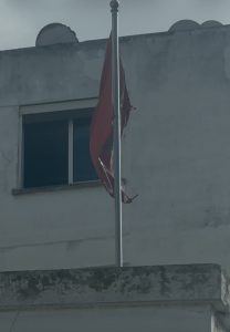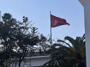 علم ممزق الجوانب رث يرفرف فوق المؤسسة المحمدية للأعمال الاجتماعية لقضاة وموظفي العدل