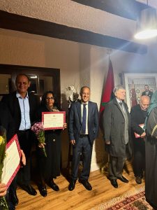 و قد اختتم هذا الحفل بتكريم المواطن المغربي السيد بوجمعة القدوري ، المقيم بكورسيكا ، والذي شارك في المسيرة الخضراء و كذا بعض الفاعلين الجمعويين الذين اسدو خدمات جليلة لفائدة أفراد الجالية المغربية المقيمة بكورسيكا.
