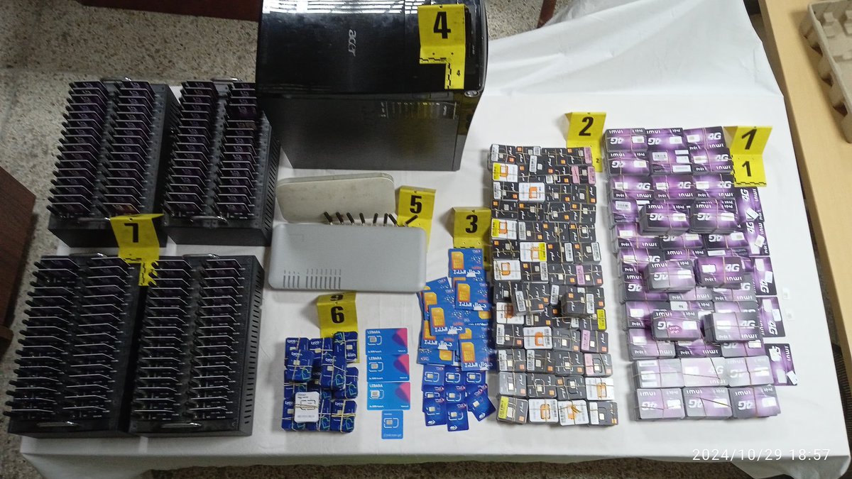 وقد أسفرت عملية التفتيش المنجزة داخل الشقة التي يستغلها المشتبه فيه، عن حجز عدة شرائح للاتصالات الهاتفية الوطنية، بالإضافة إلى حاسوب محمول، وأجهزة إلكترونية ودعامات معلوماتية متنوعة تستعمل في هذا النشاط الإجرامي.
