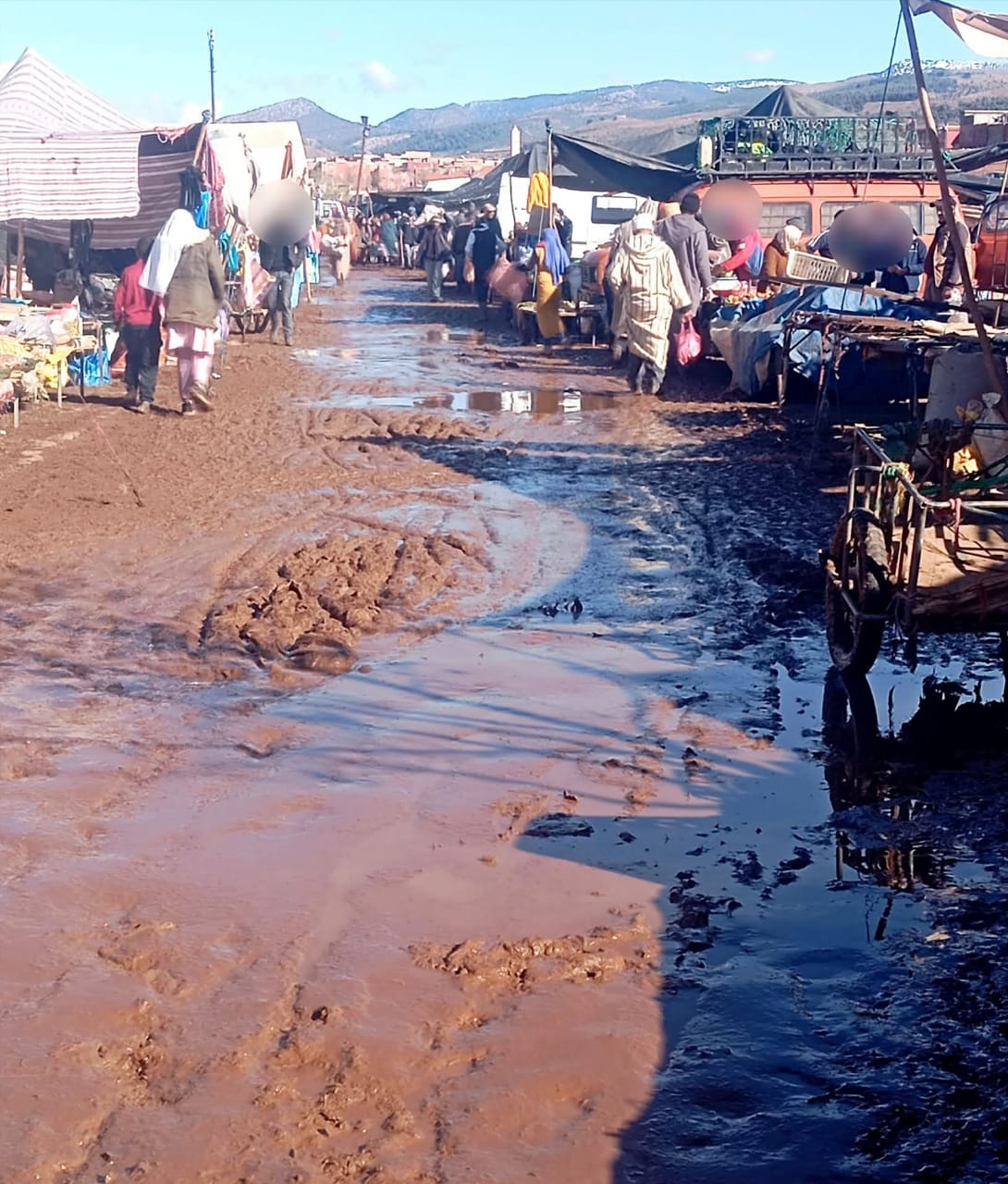 السوق الذي يفترض أن يكون واجهة تجارية وحيوية اقتصادية، تحوّل مع أولى التساقطات المطرية إلى فضاء للأوحال والحفر المائية، ما جعل الولوج إليه محفوفاً بالمخاطر، سواء بالنسبة للتجار أو المواطنين. صور توصلت بها الجريدة تُظهر أرضية مهترئة، ومياهاً راكدة وسط السوق، في غياب أي تدخل يذكر لتأهيل أو حتى معالجة مؤقتة لوضع أصبح مزمناً.