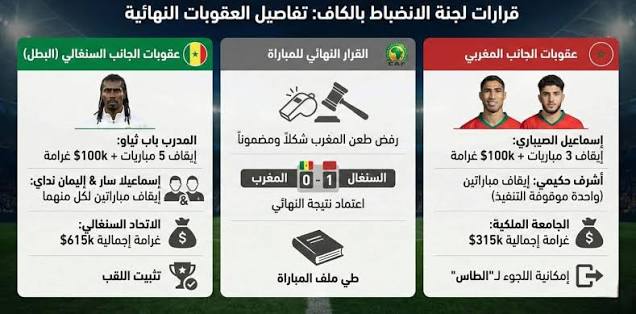 لقد عوقبت الجامعة الملكية المغربية لكرة القدم، وأُوقف اللاعبون، وفُرضت الغرامات، ورُفض الطعن بشكل صريح. هذه الوقائع وحدها كافية لنسف كل الادعاءات التي غذّتها بعض الجهات الجزائرية، ومعها أبواق إعلامية وذباب إلكتروني في إفريقيا وخارجها، حول امتلاك فوزي لقجع لزمام القرار داخل دواليب الكرة الإفريقية، والتحكم في الحكام والنتائج، بل وحسم الألقاب سلفًا لصالح المغرب.