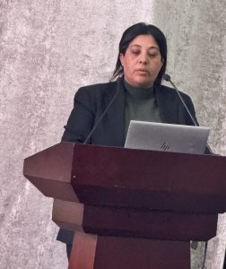 فاطمة الزهراء الكنوني المديرة العامة للشركة الجهوية المتعددة الخدمات الرباط سلا القنيطرة أثناء إلقاء عرضها